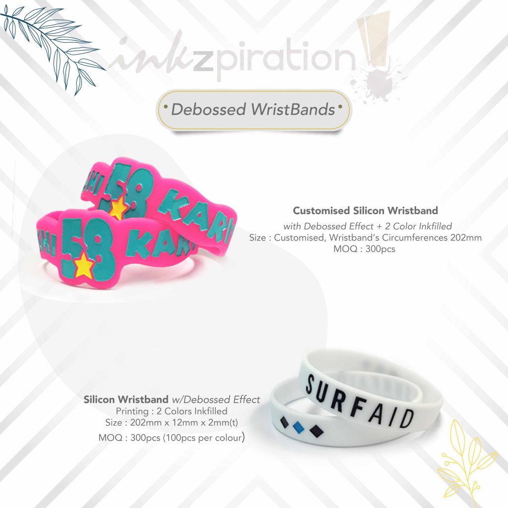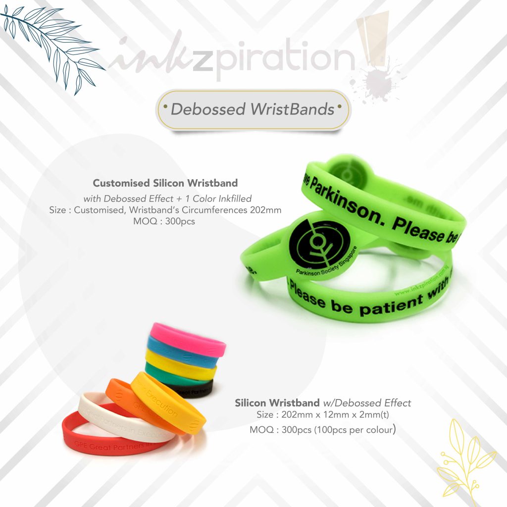 Debossed wristbands is a type of silicone bracelet that displays a message that’s stamped or sunken into the body of the accessory. The process of debossing includes removing the material using a laser. Debossed wristbands is the most common types used for many events.