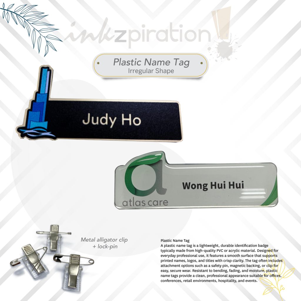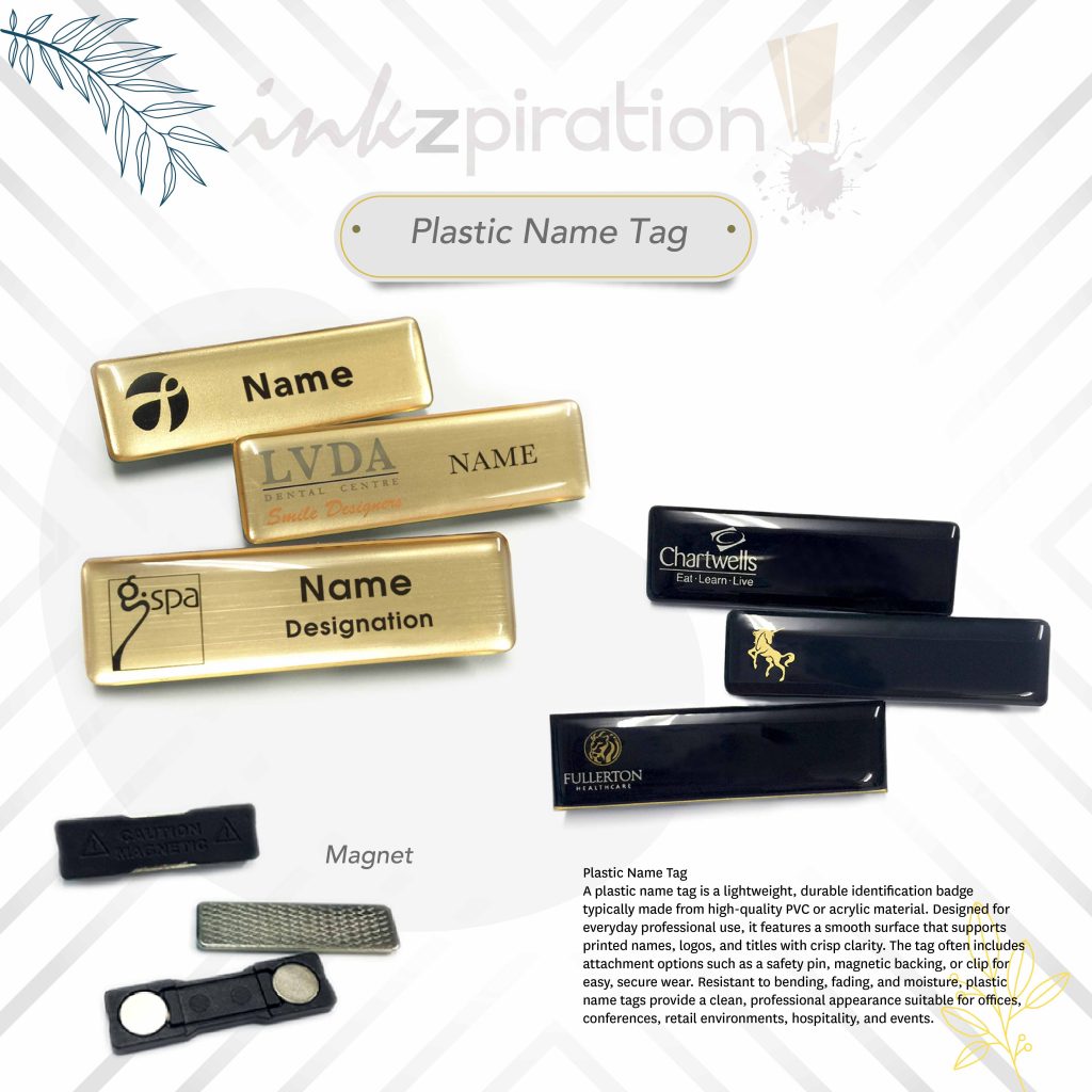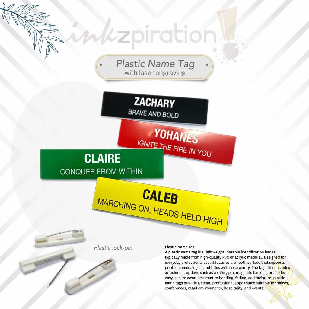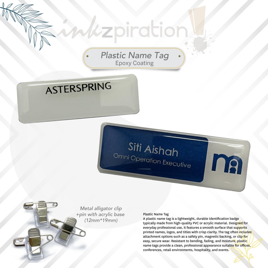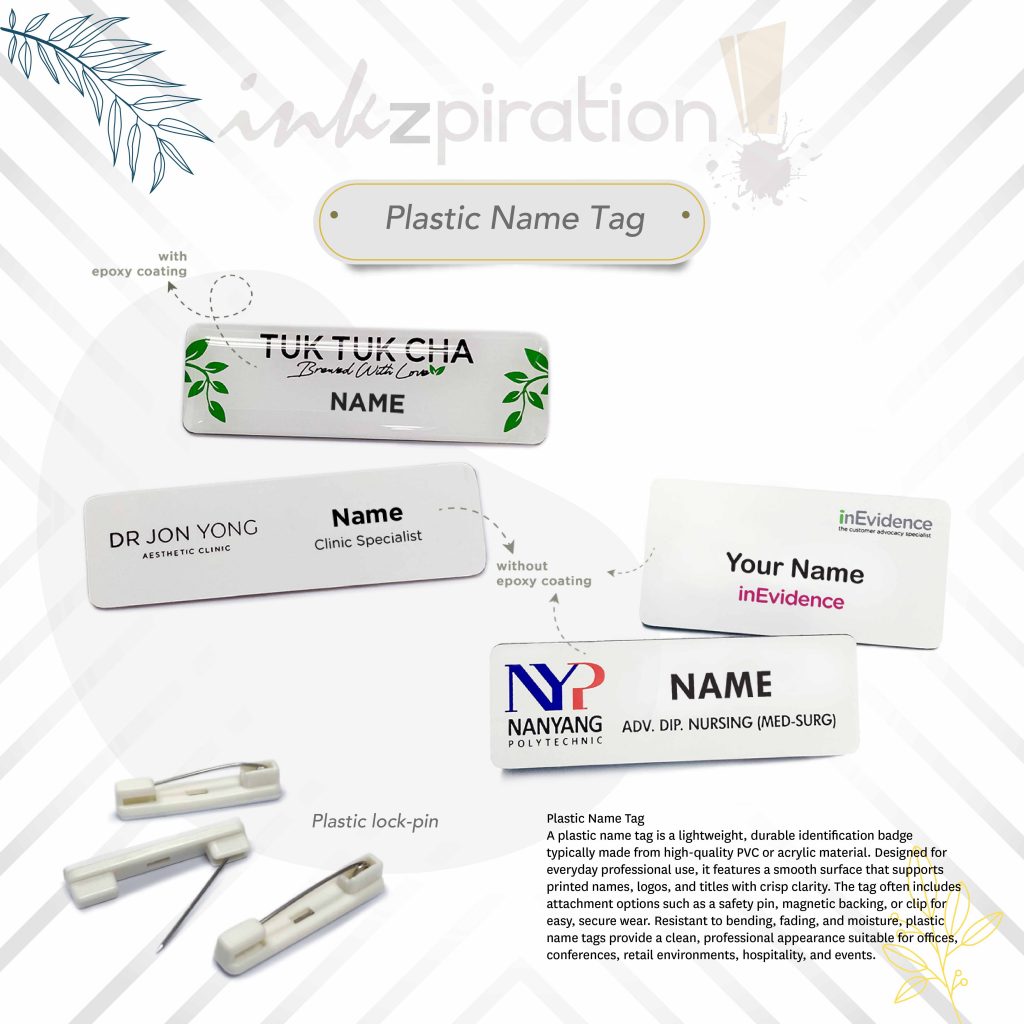 Local supplier for plastic name tags. Get it customized with Epoxy coating or none.